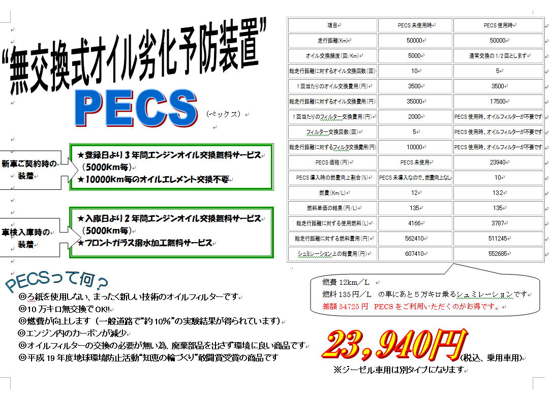 無交換式オイル劣化予防装置「PECS」