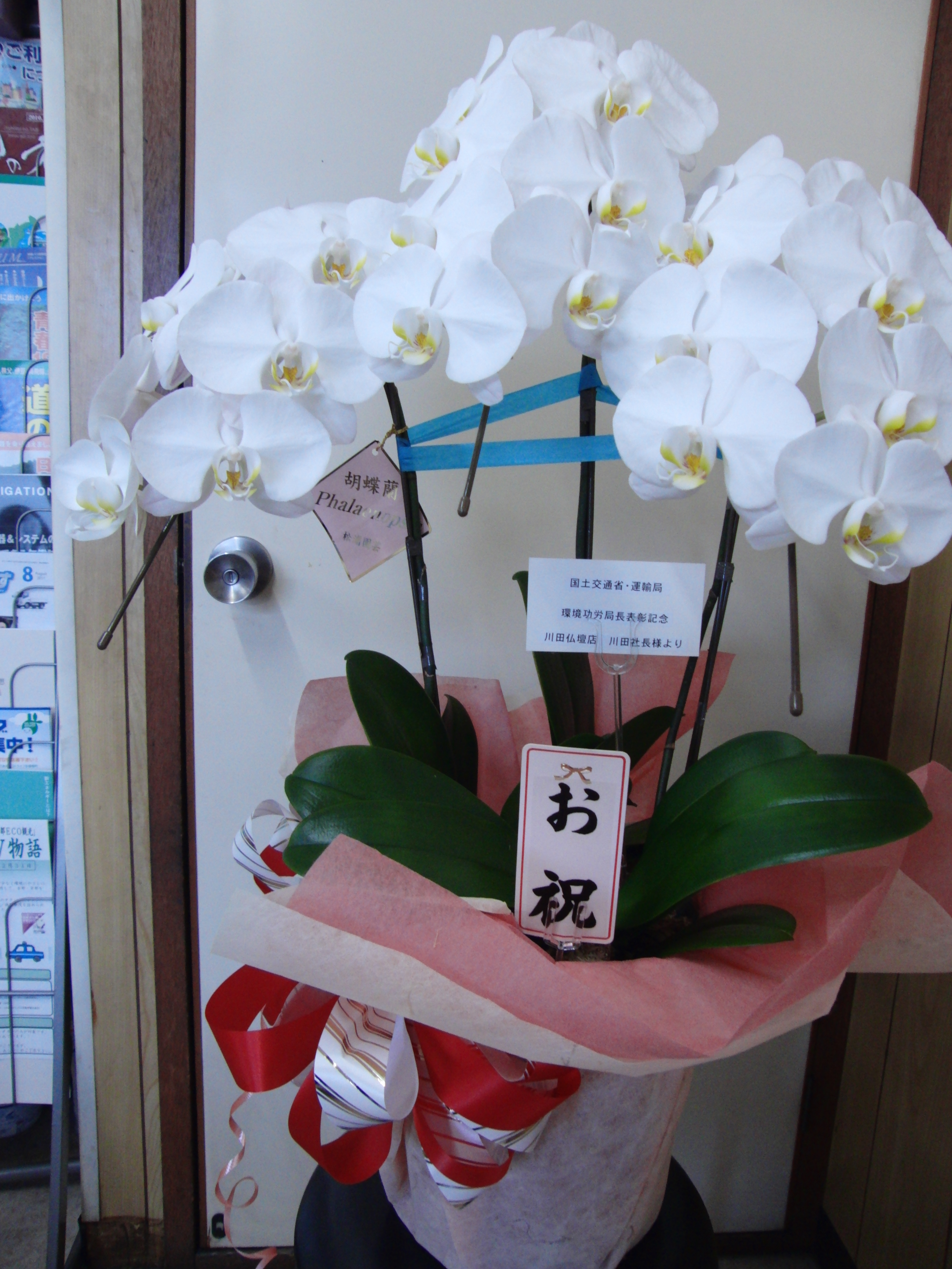 この度の表彰のお祝いに弊社お取引のかわたピーほーるの川田社長様より欄の花いただきました。その他、お祝いのメールや電話を頂戴しまして本当にありがとうございます。だんだんとこの表彰がすごいことなんだと実感し、また頑張る覚悟も大きくなってまいりました。みなさんありがとうございます。